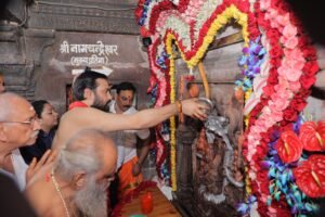 महंत श्री विनितगिरी महाराज ने विधि विधान से किया भगवान नागचंद्रेश्वर का पूजन