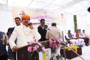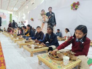 उज्जैन। प्रदेश के मुख्यमंत्री डॉ.मोहन यादव शुक्रवार को गणतंत्र दिवस के अवसर पर प्रधानमंत्री पोषण शक्ति निर्माण योजना के अन्तर्गत शासकीय जालसेवा निकेतन उमावि सीएम राइज स्कूल में आयोजित विशेष भोज कार्यक्रम में शामिल हुए। उल्लेखनीय है कि यह कार्यक्रम जीरो वेस्ट थीम पर आयोजित किया गया था। विद्यालय के प्राचार्य डॉ.प्रदीप देशपांडे द्वारा अतिथियों का स्वागत किया गया। अतिथियों द्वारा मां शारदा के चित्र के समक्ष दीप प्रज्वलित कर कार्यक्रम का शुभारम्भ किया गया।