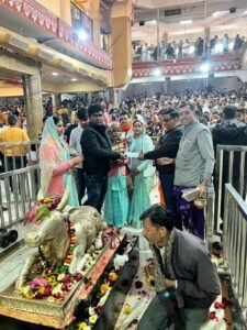 मंदिर प्रबंध समिति की ओर से दर्शन व्यवस्था के नोडल अधिकारी राकेश श्रीवास्तव द्वारा चेक व नगद राशि प्राप्त कर दानदाताओं को रसीद प्रदान कर उनका सम्मान किया गया।