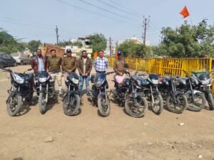 मोबाईल लूटने और बाइक चोरी करने वाला गिरोह पकड़ाया, पुलिस ने आठ लाख रूपए की बाइक और मोबाईल जप्त किए।